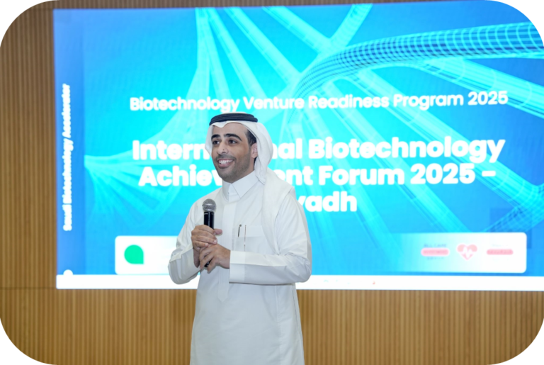 Our mission is to support high-potential biotechnology, life sciences, and healthtech innovators by providing structured programs, expert guidance, ecosystem access, and practical pathways that enable successful development, validation, and scaling – while contributing to Saudi Arabia’s ambition to become a global biotechnology and innovation hub.